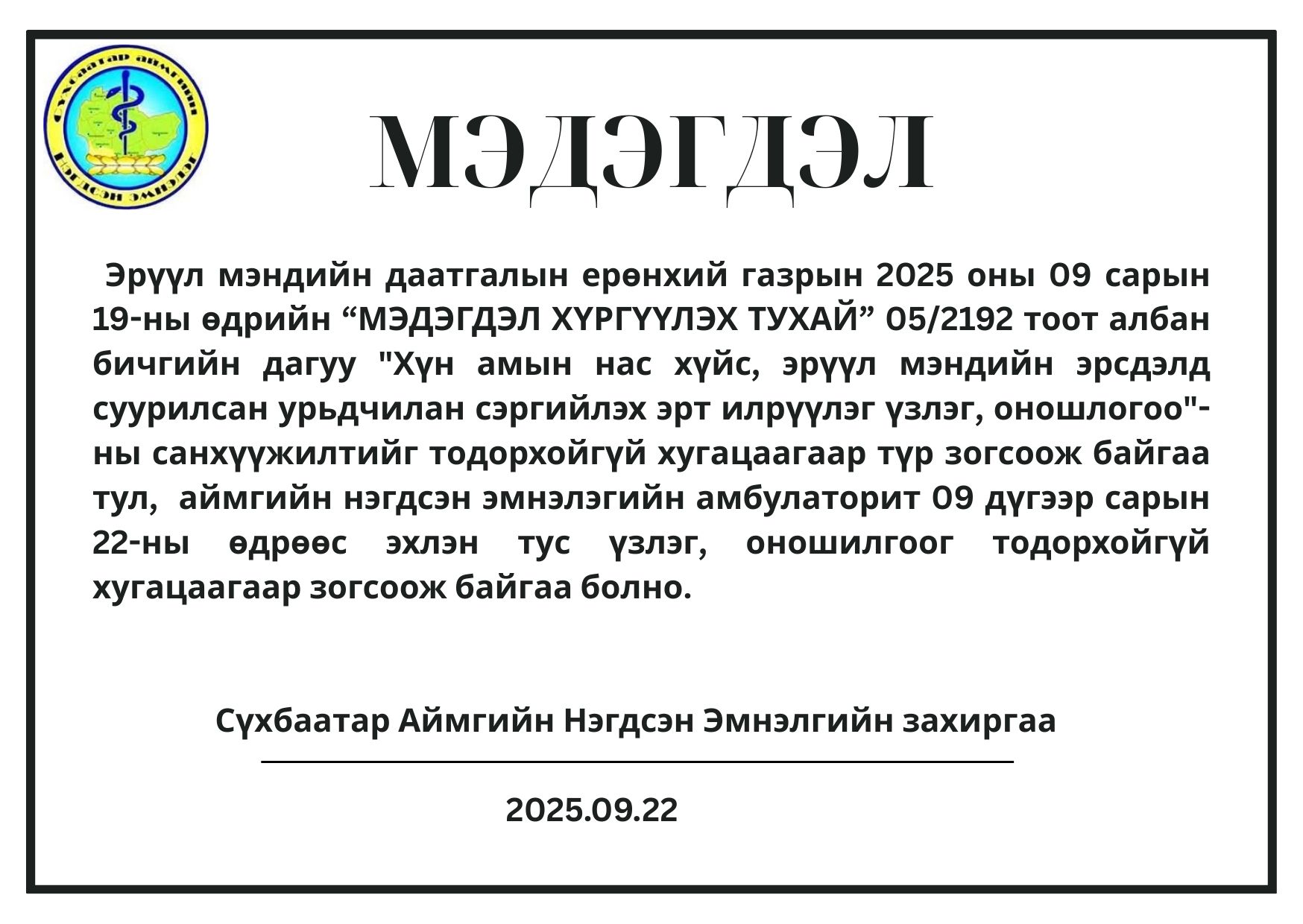 Эрүүл мэндийн сайдын 2025 оны А/402 дугаар тушаал , ЭМЯамны Эмнэлгийн мэргэжилтний ёс зүйн хяналтын …