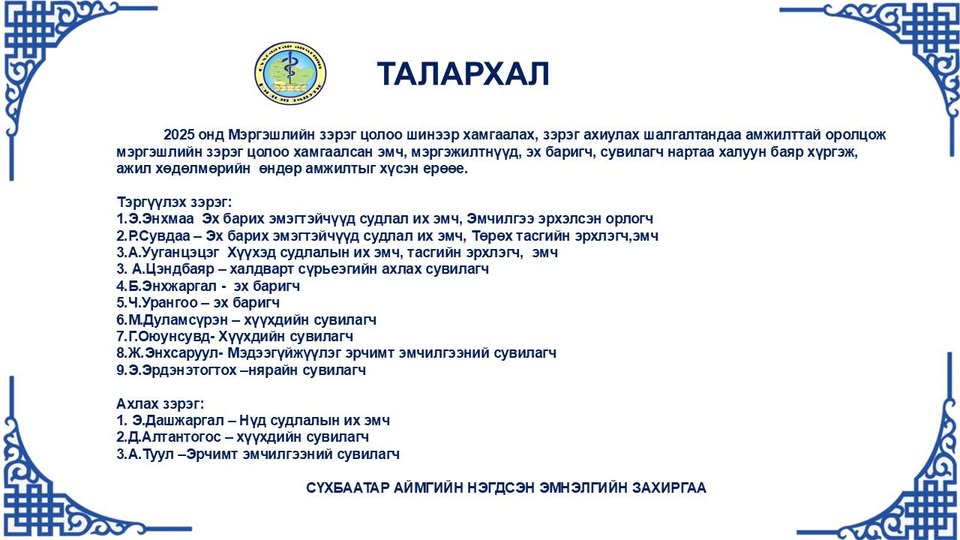 Эрүүл мэндийн сайдын 2025 оны А/402 дугаар тушаал , ЭМЯамны Эмнэлгийн мэргэжилтний ёс зүйн хяналтын …